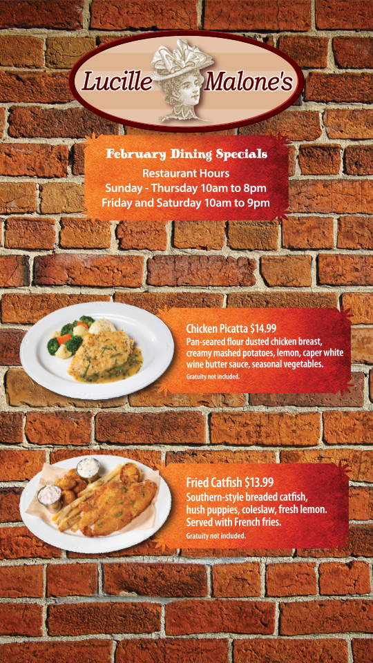 When earning 100 points that day, Guests 50 or over will receive a free meal (up to $15) at Lucille Malone’s®, plus a random point multiplier up to 5X